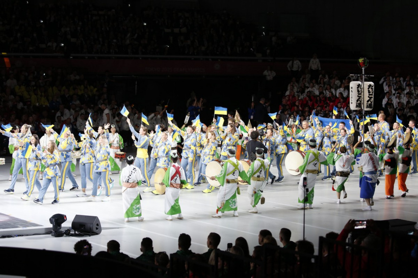 Під оплески на церемонію відкриття вийшли представники української збірної Прапороносцями команди були досвідчені Фоменко Олександр – чемпіон минулих Дефлімпійських ігор з баскетболу та Шаповал Юлія – багаторазова чемпіонка та призерка минулих Дефлімпіад з легкої атлетики.